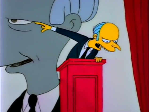 4. It’s kind of scary how this episode is from 27 years ago, but it feels like the mockery of the election we just had. Everything Burns does is exactly like what Trump did. WTF?