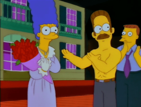 In a feeble attempt to escape her marital servitude, Marge goes out to audition for a community play, a musical version of A Streetcar Named Desire. Homer is less than responsive, and his boorish, insensitive treatment of his wife is what ends up not only getting her the lead role, but riling her up with the rage needed to play a convincing Blanche. The key here is that Homer is never intentionally mean to anyone. The first act features him and the kids watching TV, where Marge tells them about the play and then leaves, with none of them being any the wiser. This seems to be TV’s function in a lot of these shows, to just drown out other members of the family, usually at the start of an episode. But the telling scene is later in bed when Homer admits he doesn’t care about Marge’s play and he can’t fake an interest like he had in other activities of her past. When Marge asks him why he never told her any of this, he responds, ever-so sincerely, “You know I would never do anything to hurt your feelings” and promptly goes to sleep. Homer is completely oblivious in how his behavior is hurting his wife, and that’s the important thing: he doesn’t realize he’s an asshole. When called out on such a thing, like being a bad father or an overall jerk, he goes into overdrive to fix things. Watching Marge’s play strangely touches Homer, and Marge is equally touched when her husband feebly attempts to explain it to her.