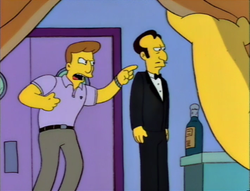 – The opening with the card game is a pretty great set-up, perfectly illustrating how slow Homer really is. His dragging contemplation keeps him at Lenny’s well into the night, and when Lenny finds him, he starts his thinking all over again, and Lenny kicks him out. This episode looked pretty strong up until Homer got the teaching job… which really makes no sense. There could’ve been other ways this could have went, like Homer acquiring a new skill or taking an interest in education in a bizarre way. I dunno.