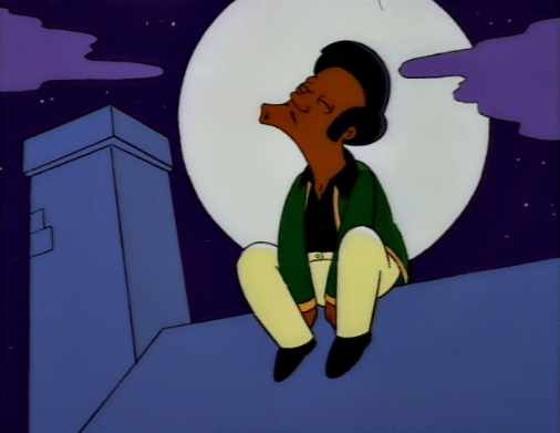 – I love how sloooow Homer is to process that Bart chooses the elephant over ten thousand dollars; when he finally gets it, he freaks out (“With $10,000, we’d be millionaires! We could buy all kinds of useful things like… love!”) Marge recommends double-ply windows, which no one else cares for. Lisa puts in her two cents regarding cruelty to animals, to which Homer shuts her down quick and tells her to go to her room.
