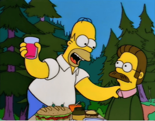 – A great line reading on Homer’s confused “D’oh?” when no one fights him on calling dibs to clean the basement. Seeing the horrendous shape the cellar is in, he sees why.