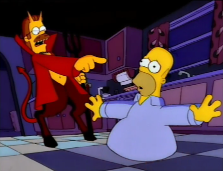 – Homer’s excitement over free items is great; we all know people who are more than willing to take in junk solely because they don’t have to pay for them. It’s taken even further here where Homer raves over soiled mattresses and surplus drums of mayonnaise from Operation Desert Storm.