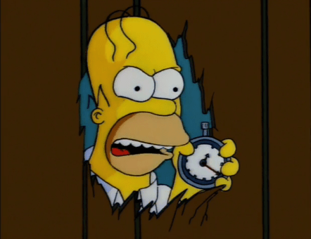 More great animation of Homer flailing wildly and manically trying to get the toaster off of his hand… twice.