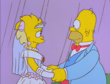 – Marge and Lisa giggling on how Lisa can wear white because Milhouse “doesn’t count” is a delightfully dirty joke, but shockingly, only the second dirtiest joke regarding white dress virginity in a cartoon (that crown goes to The Critic: young debutante Margo agrees to wear white-white… except for the gloves.)
