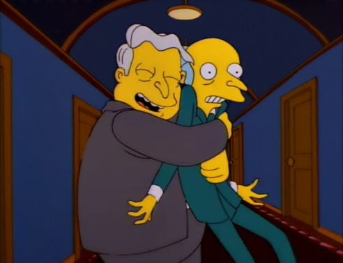 – I don’t know if I buy Martin wanting to hang out with Ralph, but we do get the great Burns line when he sees the two running away from the toy plane (“I don’t like being outdoors, Smithers. For one thing, there are too many fat children.”)