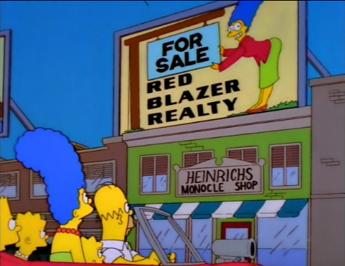 – To try and raise the money to pay back the town, Marge goes on Jeopardy!… and loses a few thousand dollars. Besides the fact that apparently the family just drove to California and that this is another harbinger for five-second celebrity cameos, I like Alex Trebek in this and how ruthless he is (“I asked you before the game if you knew the rules and you said you did.”) After chasing the family out, I love his smirk and twinge of his mustache (and one of his goons gruffly commenting, “She ain’t gettin’ the home version.”)