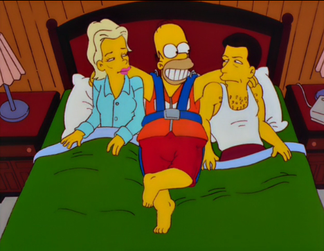 – Nothing at the bodyguard school is funny. Homer screaming because he has to do push-ups? Meh. And I guess they thought the instructor singing the theme from The Bodyguard was hysterical.
