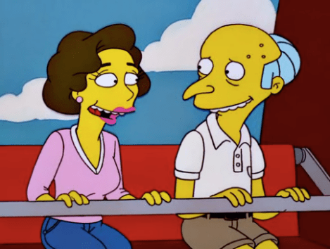– As a cartoon villain, Burns announces he’s keeping all the church profits for himself, laughs manically and attempts to disappear in a puff of smoke. When he doesn’t disappear as he intended, he just tosses the stack of money on the table and leaves. Would Burns ever do something like that?