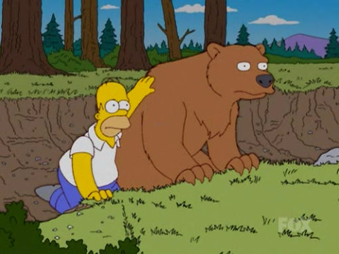 – I like Homer standing up for Marge (“No one messes with my Mrs. I’ll come down on those guys like the garage door on Bart’s bike!”) but his commercial is pretty laugh-free and kinda stupid (“Visit our web site: http://www.aljazeera.com. We’re not affiliated, we’re just piggy-backing on their message board.”)