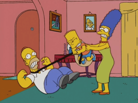 – Marge’s “Woopdee-doo!” bit is really bizarre. I had the same awkward reaction as Bart and Lisa. Her callous reaction to Homer drowning his sorrows every night has this really sad undercurrent that the episode is not prepared to, or frankly cares to address.