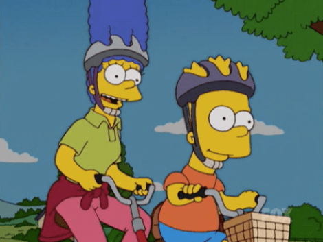 – Marge builds a kinship with the Tomatoes by bitching about Homer. Now, if I may do a quick compare & contrast, think back to “War of the Simpsons,” where we have a similar joke. Marge lists hours and hours of faults about Homer, so many that she grows hoarse, but they’re small, believable things, like that he chews with his mouth open and his long yellow toe nails. Here, Marge complains how Homer cut up her wedding dress to make a badminton net and how he’s a multiple felon. It’s not as funny when Homer’s made out to be this insane maniac rather than just a normal person.