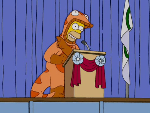 – Marge is humiliated by Homer getting into a fight at the Easter egg hunt, but the silver lining is that Homer didn’t start it. Seeing Maggie isn’t getting any eggs, Homer helps out by stealing them from other children (“Peekaboo, I steal from you!”) It’s kind of sweet. Then the referee flat-out tackles him, and the brawl begins. Sure, Homer ends up taking it too far, but at least it’s a little victory for me that for once, Homer wasn’t the provocateur of violence.