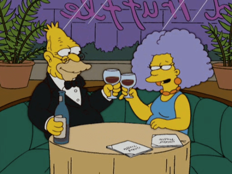Remember, Abe was in love with Mrs. Bouvier until Burns tried to steal her away and she decided she didn’t want either of them. Why would Selma even entertain this?!
