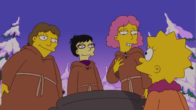 The premise: Lisa stumbles upon a trio of Wiccans and becomes interested in their beliefs and practices, leading to her having to defend them when the town kicks off their own modern day witch hunt. Meanwhile, Homer becomes chummy with Cletus once he discovers he and his fellow hick folk’s penchant for underground beer brewing.