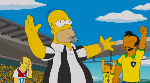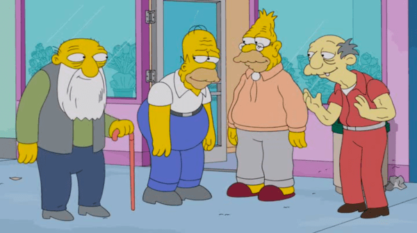 – There’s a whole two minute sequence at the beginning explaining how Homer got stuck in a big playground coil. All I could think of is how It’s Always Sunny in Philadelphia did the same gag, but realized it’s even funnier (and less time consuming) to just show a character in that predicament and not explain it.