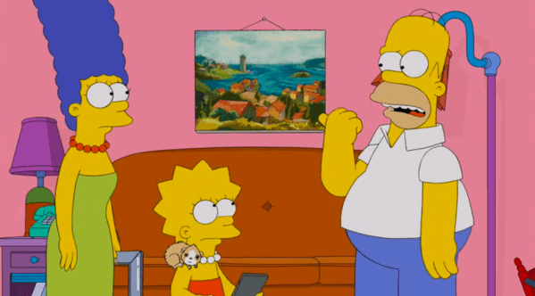 The reaction: Just when I said last episode was the worst I’ve seen in terms of repetitive expository dialogue, here comes another hearty contender. It’s become yet another shortcoming of this show that I feel I have to stop bringing up again and again, it’s just what the series is now. “Tell, not show” is this show’s mantra now. Lisa meets this kid Lucas, an earnest failure who wants to be a competitive eater, and thankfully we have Lisa’s brain to tell us exactly what she’s feeling (“Aww, he’s sweet. …what am I doing? He’s just Ralph with a dream! But I’m sure I could totally change and fix him.”) What? So Lucas comes by the house and the two just kinda hang out, with Lisa seeming to barely tolerate him. Marge and her sisters are watching them in the backyard, with Patty and Selma taking swipes at his poor kid for being fat, and chiding Marge that her daughter’s going to end up with an obese tub of lard just like her, which felt incredibly mean-spirited and vindictive for them to say. Then the episode completely switches gears, leaving Lucas behind to become a Homer-Marge episode. Marge proposes Homer taking Lisa out to dinner to improve their relationship, and after Homer talks about all the things he wants to do, Marge replies, “Homer, you can’t just do the things you want to do!” This is later followed by Homer speaking more of the plot (“She might marry someone like me? You think that might be bad!”) The whole show is filled with people just saying what they’re thinking or currently doing or what they previously just did. Our ending involves Marge crashing Homer and Lisa’s dinner date to apologize. She takes him over to a corner of the restaurant, then removes off her coat to reveal a fancy, sexy dress, then stands over a convenient floor grate to have it billow further up her legs. I guess we’re supposed to forget that their daughter is a few feet away and can see all of this. Marge claims she sold her sewing machine to buy the dress, and Homer makes some kind of reference to Project Runway. I honestly do not understand what this is about. And this is our conclusion. What is this? This show is all about over explaining, but for this bit, I feel like it’s the opposite.