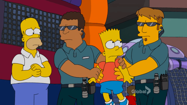– The sociopath kids in the army twist is so bizarre. It feels like something out of South Park, they pull the secret government program card quite often. But what are we supposed to take from all this? Bart took advantage of Homer and Marge’s frightened state in a hilarious montage where he drives Homer’s car, chucks baseballs at his face, and kicks him out of bed to sleep next to Marge (???), and they just openly let him. And again, they’re terrible parents for not trying to get Bart actual help. Instead, they send him away to an asylum they got from a 1-800 number at the bottom of the online test. What the fuck is this test and where did it come from? Bart is visibly scared when he’s sent away, and finally returns home almost in tears, and it’s basically his parents fault. This is two in a row for Marge being kind of a shitty parent, and it’s not a good look for her.