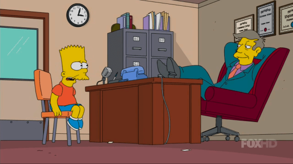 3. Who the fuck approved the design for Bart’s mustache? They couldn’t have drawn it as black lines, comic book guy or Apu style?