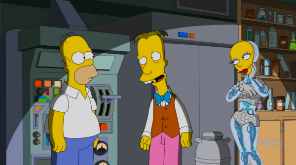 I agree that if they are going this route, I would rather they attempt to develop Frink as a character. Y’know, like they did in “The Nutty Professor” because there is nothing remotely resembling satire in this episode. Just “wacky science man becomes cool, gets laid, then decides he’d rather stick with his robot wife.”
