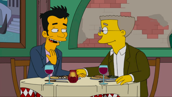 Mike perfectly put it. Smithers was gay, but it was never the point of the thing; his homosexuality was consequence of this comic relationship, not the cause. In fact, now that they tried to “analyze” his homosexuality and relationships seriously, it is so awkward. As Mike said: if he is THE GAY MAN who loves Mr Burns, and it’s a serious thing, why does he love him then? What makes his heart beat fast when he sees Mr Burns?