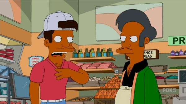 – Apu getting called out for being a stereotype is nothing new. Remember “Team Homer” with the bowling team The Stereotypes? (“They begged me to join their team! Begged me!”) Luigi was on said team, who shows up as a capper to the scene where Apu and Jay square off, where the joke is he says he doesn’t like stereotypes, but he totally is one! That’s what I mean when I say all this feels wrong. All of this material the show has already pushed to the nth degree. By season 7 and 8, the show was already ripping itself inside out, making fun of its running gags and being very meta and self-conscious about show hallmarks. That’s why a character like Apu feels almost like a relic to me, but he’s untouchable not only because the series is such a hallmark, but the show doesn’t change anything regardless unless a cast member dies, and sometimes not even then (see: above). I’m interested in seeing the documentary The Trouble With Apu by comedian Hari Hondabolu to see a different perspective on the character. I guess the larger point for me is that I mostly feel about Apu like I do with everything else about the show: it’s all played out, it’ll never change, and it should have died years ago.