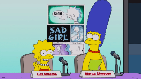 – The opening is another CG segment with the Simpsons as candy bars in a bowl fearing being taken, until eventually they’re the only ones left in the bowl and are left on a top shelf to rot. Then they feast on the suicidal Easter bunny or something. I didn’t really get what they were doing. Was this meant to be a take on Sausage Party or something?