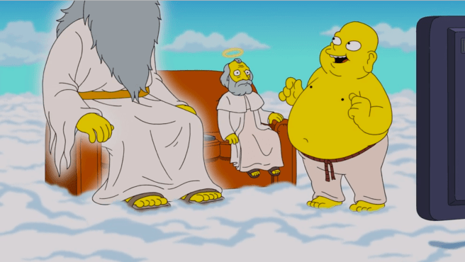 – We’ve actually already seen a parody on “Invasion of the Body Snatchers” in one of the first Treehouse of Horror comic books I read as a kid. Not that the show can’t encroach on territory the completely unrelated comic series did, but it doesn’t help when they do it much, more worse. The comic starts in media res with Homer being hauled off to the insane asylum screaming about pod people, then telling his story from the beginning how everyone in Springfield slowly got replaced by emotionless pod copies who preferred tepid tap water to beer, much to Homer’s horror. The story wraps up at the end when Homer is vindicated, but everything goes off the rails as other post-apocalyptic cliches appear, and Sideshow Bob destroys the fourth wall, revealing their entire existence is a fictional comic book. Re-reading it, it’s filled with a lot of fun moments, humorous lines, and even in a comic, a sense of real danger and risk. In “Pod-y Snitchers,” the alien species runs Mapple, and are able to infect the planet from above because everyone is busy staring at their phones. Wow, what insightful social commentary for 2018. The twist ending has everyone’s consciousness being transported to an alien utopia, but then what was the purpose of the pod duplicates staying on Earth? Bah, who cares.