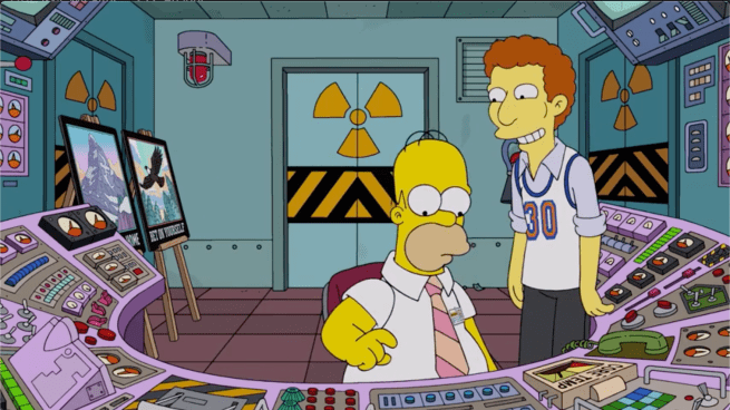 The reaction: Boy, the writers must have been laughing their tits off at this Mike guy. It feels like 70% of all the dialogue in this episode is just his motor mouth saying… jokes? I think? For an episode that focuses so heavily on this character, I am completely lost as to who he’s supposed to be and what I’m to get out of his “character progression,” whatever it even was. Mike is a 35-year-old voiced by the 49-year-old Michael Rapaport, who I’m not at all familiar with, so any kind of inside joke connecting Mike’s personality with his voice actor is completely lost on me. John from “Homer’s Phobia” was effectively a yellow John Waters, but his personality was wholly realized within the episode on its own. Anyway, Mike is one of a dozen new interns at the power plant, who immediately sticks up for Homer when he gets stymied by the others asking him actual questions about the plant. Mike looks up to Homer thanks to countless news stories about the plant’s numerous near-meltdowns over the years always featuring Homer at the epicenter of the crisis (despite Homer being a town pariah at this point, I guess none of these articles Mike presumably has obsessively read over and over again at this point implicate he was responsible for these disasters.) The first half of the episode is just him going on and on about what an honor it is for him to worship at Homer’s feet and how fucking amazing he is. But why? Mike is not a scientist or an engineer (“Why not follow my hero into the world’s greatest calling: nuclear whatever!”) He never asks Homer any questions about his job or any specific interest in what he does. It’s not even anything broad like he admires Homer’s “courage” for taking charge and averting all those meltdowns, like it’s just a general heroism he looks up to him for. It’s just… nothing. Absolutely nothing. Mike looks up to Homer because that’s what we wrote in the script. He wears a basketball jersey throughout and is obsessed with the sport, namedropping numerous players. Why isn’t one of them his hero? That doesn’t come into play in the story, so I guess it’s just another hilarious quirk from this great new character.