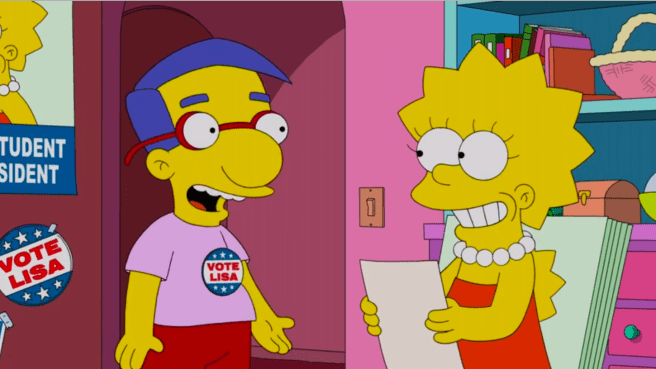 The premise: Lisa’s new braces leave her with a permanent grin, making her instantly more palatable to her fellow students. She decides to use this to her advantage by running for student body president. Meanwhile, Homer and Marge get invited to Artie Ziff’s wedding, and are shocked to find his bride-to-be is an exact copy of Marge.