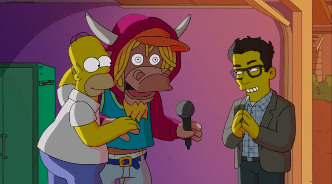 The premise: Through flashback, we see 90s teenage Homer’s dreams of being DJ to a Showbiz Pizza-esque robot band fall apart. In the present, the Simpson family’s efforts to recover the old robots to lift Homer’s spirits are dashed when they fall into the hands of J.J. Abrams, looking to reboot the property into a film series. Homer now has a new life’s purpose: to troll the movie online in efforts to stop it from being made.