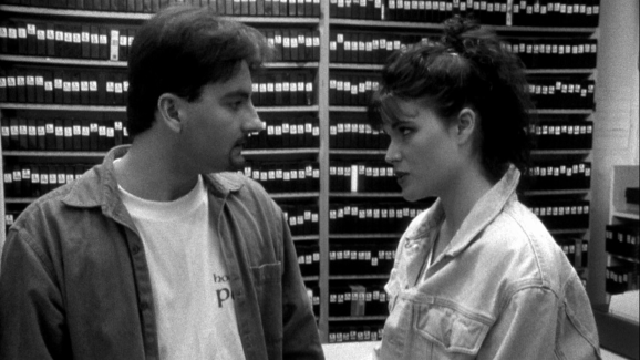 One of the greatest enjoyments out of the movie is seeing how Dante and Randal bounce off each other through the running time, with Randal continuously needling Dante’s worldview and attempting to provoke him to react, while Dante tries to stand firm in his protests and self-flagellation. Whether they’re talking about personal matters, where Randal plays armchair therapist to Dante’s problems, to other topics like debating whether The Empire Strikes Back or Return of the Jedi is the better Star Wars sequel, all of the dialogue feels very natural. Sure, some of it feels a little overly written (which would be a Kevin Smith dialogue staple from this point forward), but at least between these two characters, it never feels like actors rambling off paragraphs of dialogue off a page to me, it just rings as normal conversation between two friends. Even beyond their heated back-and-forths, you can still sense their deep camaraderie. Randal teases Dante after he relents one of their arguments in his favor (“You know I’m your hero!”), and despite their big blowout fight at the end, they make up quickly after that to leave the store on good terms. Brian O’Halloran and Jeff Anderson really feel effortless in these roles, and they have an incredible amount of chemistry together.