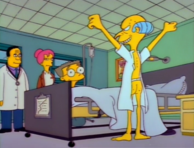 - I remember for my last re-watch, season 2 is where I really fell in love with Mr. Burns, and I’m experiencing the same feelings now. He’s just such a fucking great character, you can tell that the writers just love coming up with material for him to say. And as with all the characters, he’s multi-faceted; as despicable and evil as he is in all other regards, there’s the killer line in this episode where he earnestly and honestly looks Marge in the eyes and asks, ”Can you make me beautiful?” And you really feel it, he means it.