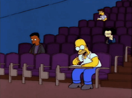 - The act two climax of Homer’s class gathered around the Simpson dinner table furiously writing in their notepads strikes me as bizarre. They like his class because he dishes out juicy gossip, that makes sense, but what scandalous news are they hoping to gain from openly hoarding in on a family dinner?