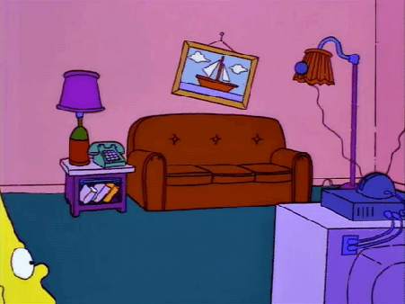 - The episode opens with Homer and the kids watching TV in the elusive “rumpus room,” a sort-of play room that’s appeared in a couple episodes, most notably “Three Men and a Comic Book” with Homer in his bean bag chair. Could they not have staged this scene in the TV room because of the credenza joke?