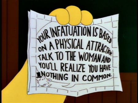 - After this episode left kind of a bad taste in my mouth almost a decade ago, I was curious how it would hold up seeing it again, and yeah, I feel about the same. The ending with Homer’s eureka moment about providing “complete and utter dependence” just doesn’t work for me. The world of this show is dripping with cynicism and defeat, and you could say the same about Homer and Marge’s marriage, how Marge could have possibly married a better man for her, but highlighting her sorry lot in life of picking up after this absolute slovenly oaf this sharply as the emotional climax of the episode doesn’t feel right. On top of that, Homer’s assurance he’ll never lie to her again after Marge feebly asks, “How do I know I can trust you?” really falls flat considering the amount of bullshit she would have to put up with for twenty-plus more years. Too much of this episode feels like I’m watching the selfish, asshole Homer of the Mike Scully years.