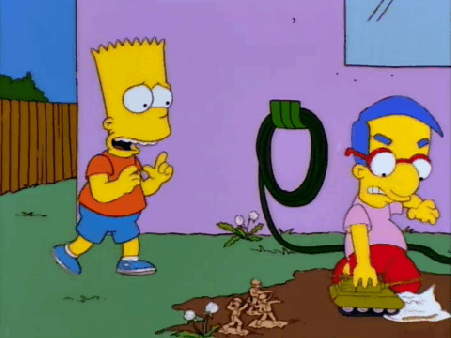 - I love that Milhouse is basically in the episode to be abused the whole time, from getting jammed into a carseat at the start of the trip to being the unfortunate victim of friendly spit fire by Bart and Lisa throughout their whole carnival visit.