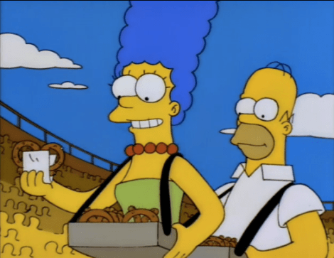 – Marge lets Bart and Lisa go off on their own at the mall, but tells them to be careful. So when a stranger asks them to come with him, the two kids agree whole-heartily. They’re put in a focus group for Itchy & Scratchy, which is a great scene: the totally not suspicious sneezing mirror, Ralph eating the knob (“Please refrain from tasting the knob,”) Nelson messing with Milhouse’s trigger (“They like Itchy, they like Scratchy, one kid seems to love the Speedo man,”) and Meyers’s outburst toward the kids, leading to Ralph crying and turning the knob in kind.