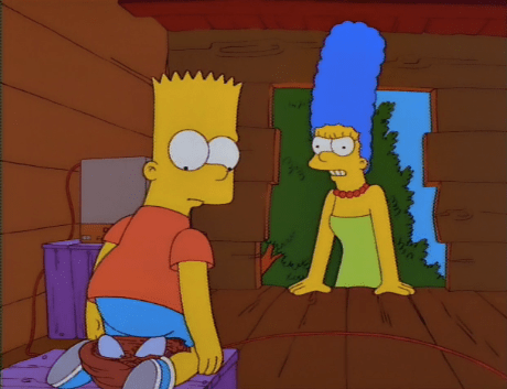 – My favorite part of the episode is Nelson’s makeshift bathroom office: his employee-of-the-month frame, keeping his files in the empty toilet tank, and insisting the purity of his business (“These are study aids. They’re for novelty purposes only. If a few bad apples use them for cheating, I can’t be held responsible.”) Also great is when he comes back in act two to further remind Lisa of her misdeeds (“Tomorrow’s fractions quiz. I’ll give you the numerators free, but the denominators are gonna cost ya’.”)