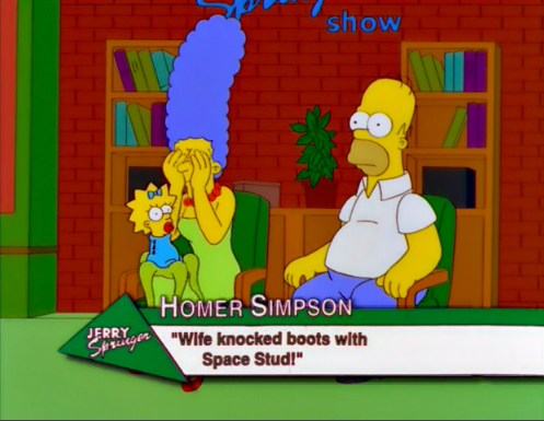 – Great nightmare illustrating Lisa’s paranoia that her one bad test score would deny her admission to Harvard (“Nasty business, that zero. Naturally, Harvard’s doors are now closed to you, but I’ll pass your file along to… Brown.”) What a silly dream. Almost as silly as one high test score affording a school a grant. …oh wait.