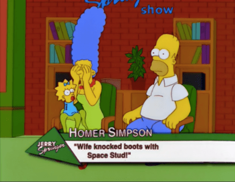 – They’re both stupid gags, but I like Homer evening out the levels of salt in the fish tank to accommodate Pinchy and the fish, and the callback to the supermarket in revealing he has a packet of cold tablets on a toothpick.