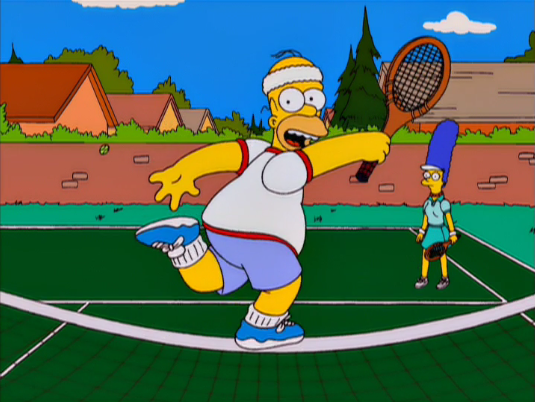 – Good Homer line when Marge is shocked that he’s not at work yet (“They said if I come in late again, I’m fired. I can’t take that chance!”)