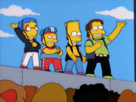 – From what we’ve seen of Homer’s past, I don’t really see him as being a bully. Also he seems to be pummeling a nerdy-looking Smithers.