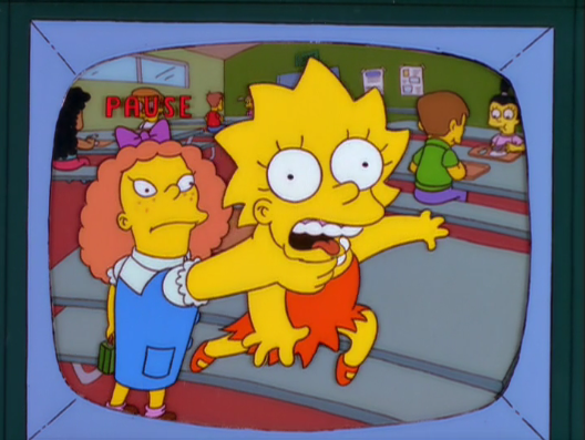 I do kind of like the first half of this episode, showing that Francine is just this stone wall that Lisa cannot get through to or understand why she’s abusing her so violently. It is, however, an enormous waste of guest star Kathy Griffin, who gets maybe five lines, which boil down to maybe twenty words. I like her bully voice and her screaming, and keeping her mostly mute works for her character, but if that’s the case, they could’ve had anyone do the voice. I like Lisa’s consultation with Nelson, and seeing how organized and efficient the world of bullying is, their rules and regulations, and their own code of ethics. Examining the psychological urges and motivations of bullies, but in an absurdist, comedic way, could have been great. But I really can’t get on board with this ending. Lisa spraying herself with salad dressing stopping Francine from her impending attack, leaving her acting like a confused animal is just plain bizarre. The whole final act is devoted to this ridiculously preposterous finale. I wasn’t so much annoyed as I was bored, I felt like they could’ve come up with a better ending but were apparently quite tickled by this one, I guess.