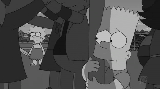 The premise: “Dial ‘M’ for Murder, or Press ‘#’ to Return to Main Menu” is a black-and-white Hitchcock-inspired tale where Lisa unintentionally makes a deal with Bart to kill their respective teachers. “Don’t Have a Cow, Mankind” features a 28 Days Later-style zombie infestation following the release of mad cow burgers at Krusty Burgers. “There’s No Business Like Moe Business” is a Sweeney Todd riff wherein Moe attempts to woo Marge with his new and improved ale, sweetened with the blood of a dying Homer, presented as everyone being actors performing the musical on stage.